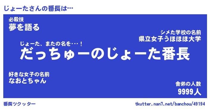| 意味不明あだ名 | 『ペロリンじょーた』『永久保存じょーた』 |
