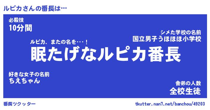 | ヘコむあだ名 | 『ルピにー』『つくし』『ルピお』 |