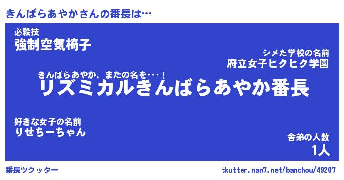 | 伝説のあだ名 | 『伝説のスナイパーきんばらあやか』 |