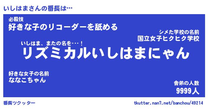 | ピコ太郎風あだ名 | 『イコ太郎』『ピイ次郎』『イシ八郎』 |