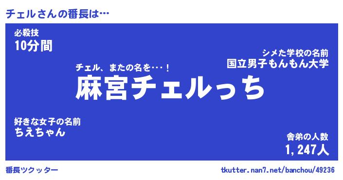 | ヒーロー風カッコイイあだ名 | 『スーパーチェル』『ウルトラチェルマン』 |