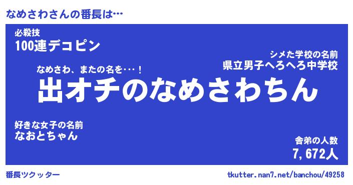 | ヒーロー風カッコイイあだ名 | 『スーパーナメサワ』『炎刃騎士ナメ』 |