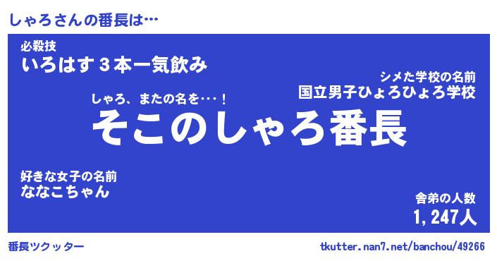 | 2回繰り返すあだ名 | 『しゃしゃ』『ししゃゃ』『くにくに』 |