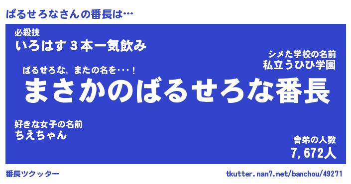| ヘコむあだ名 | 『ばるにー』『なまこ酢』『ばるを』 |