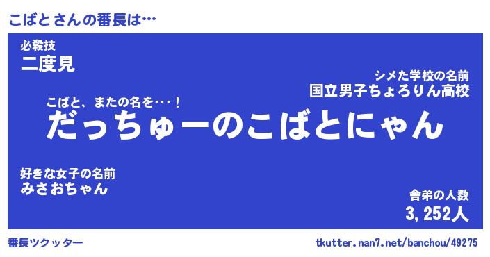 | 伝説のあだ名 | 『伝説のスナイパーこばと』 |