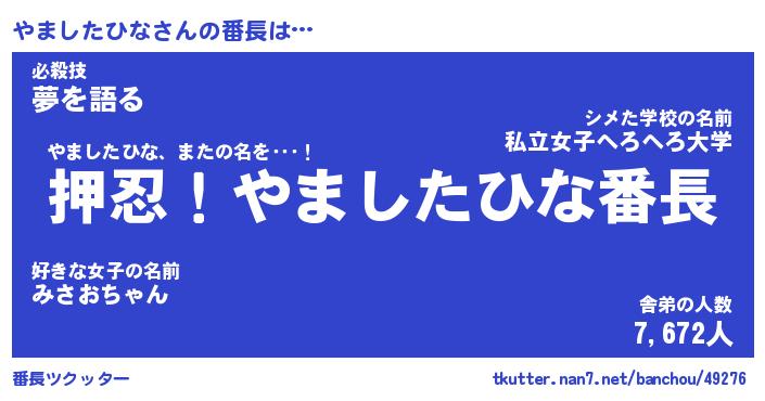 | ヒーロー風カッコイイあだ名 | 『スーパーヤマシタヒナ』『魔戒騎士ヤマ』 |