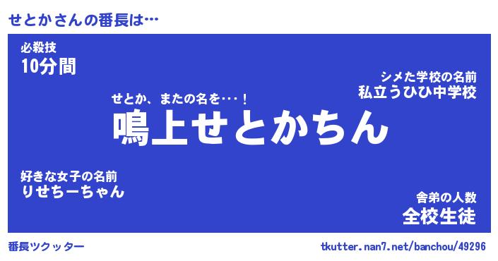 | 意味不明あだ名 | 『ペロリンせとか』『せとかフォーエバー』 |