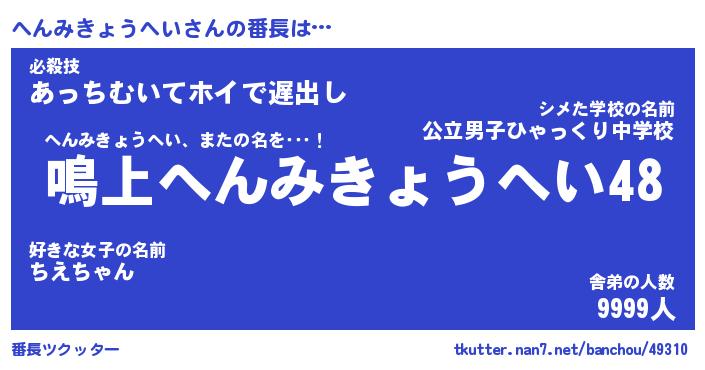 | 意味不明あだ名 | 『ペロリンへんみきょうへい』 |