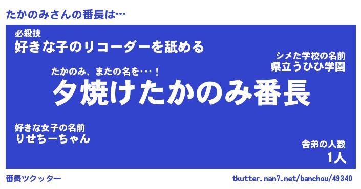 | 意味不明あだ名 | 『ペロリンたかのみ』『永久保存たかのみ』 |