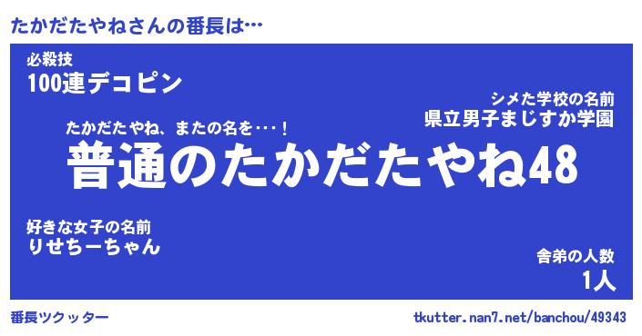 | 肩書あだ名 | 『たかだたやね御曹司』 |