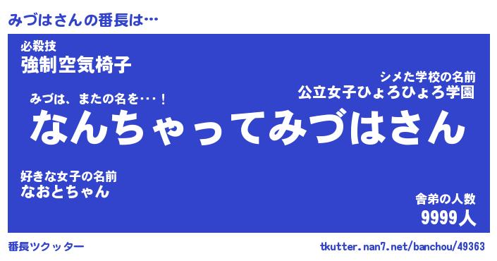 | ヒーロー風カッコイイあだ名 | 『スーパーミヅハ』『ウルトラみづはマン』 |