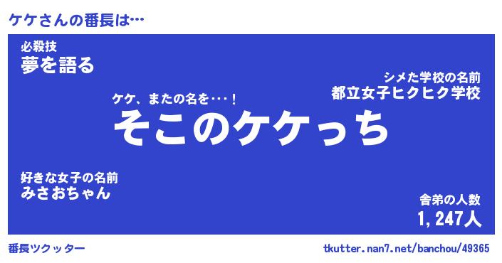 | ヘコむあだ名 | 『ケケにゅー』『牛乳』『ケケを』 |