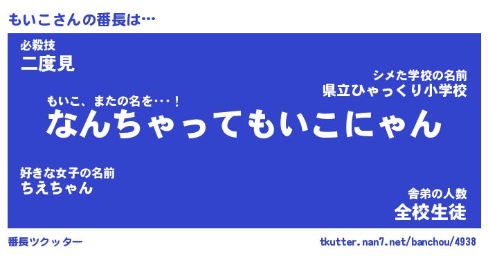 | ヒーロー風カッコイイあだ名 | 『スーパーモイコ』『ウルトラもいこマン』 |