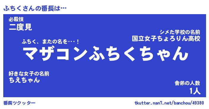 | ヒーロー風カッコイイあだ名 | 『スーパーフチク』『ウルトラふちくマン』 |