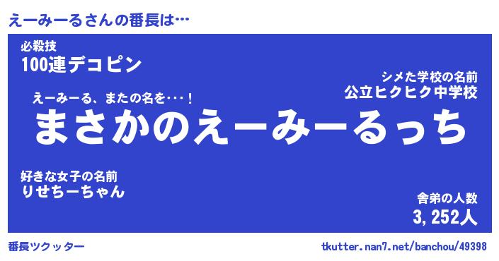 | 肩書あだ名 | 『えーみーる店長』『えーみーる大統領』 |