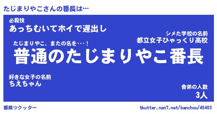 | 肩書あだ名 | 『たじまりやこ社長』『たじまりやこ班長』 |