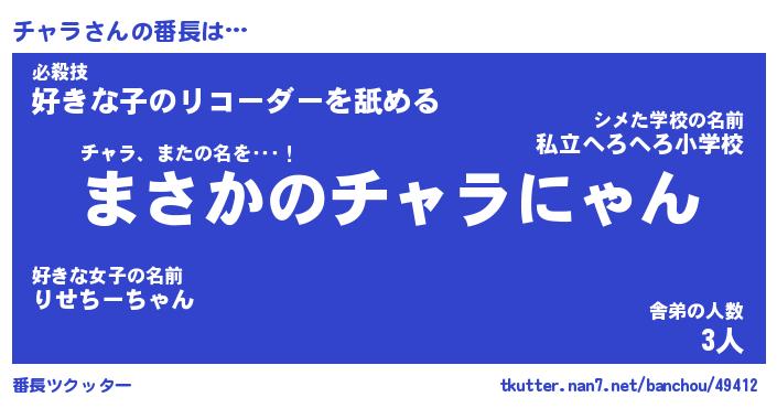 | ヒーロー風カッコイイあだ名 | 『スーパーチャラ』『ウルトラチャラマン』 |