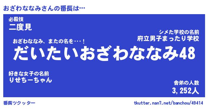 | ポケモン風あだ名 | 『オザチュウ』『オザワダネ』 |