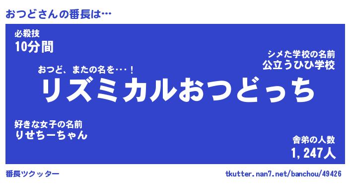 | 意味不明あだ名 | 『ペロリンおつど』『おつどフォーエバー』 |