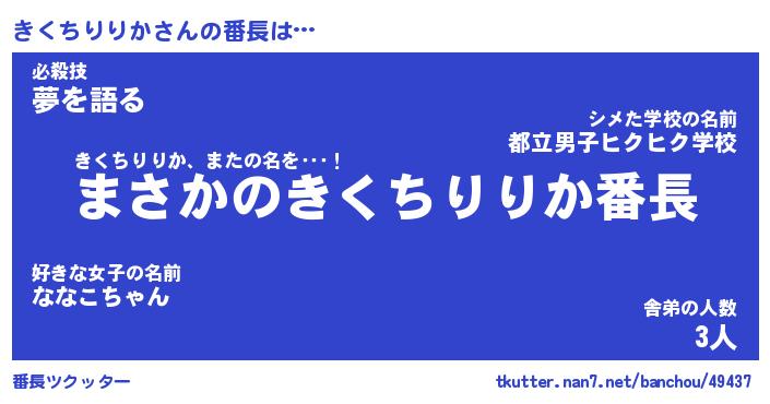 | ヒーロー風カッコイイあだ名 | 『スーパーキクチリリカ』『魔戒騎士キク』 |
