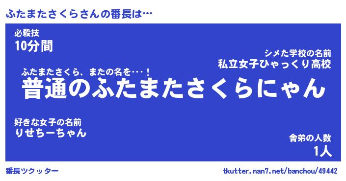 | 男性向けラノベタイトル風あだ名 | 『ふたまたさくらの憂鬱』 |