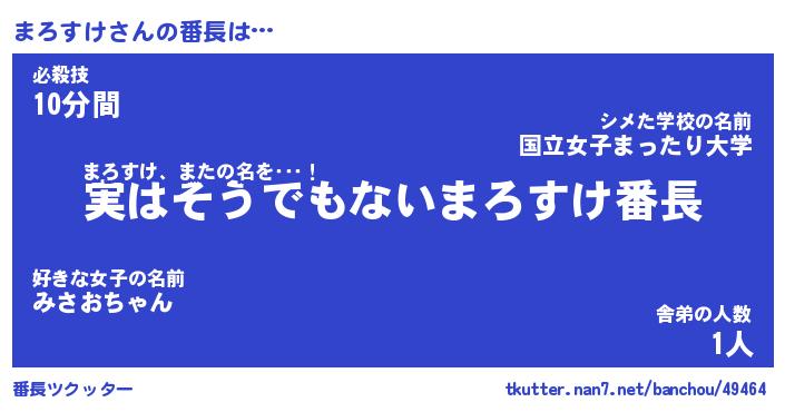 | 意味不明あだ名 | 『ペロリンまろすけ』『永久保存まろすけ』 |
