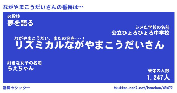 | 意味不明あだ名 | 『ペロリンながやまこうだい』 |