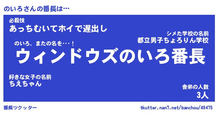 | ヒーロー風カッコイイあだ名 | 『スーパーノイロ』『ウルトラのいろマン』 |