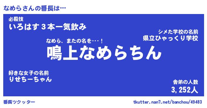 | ヒーロー風カッコイイあだ名 | 『スーパーナメラ』『ウルトラなめらマン』 |