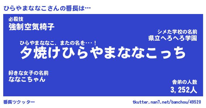 | 意味不明あだ名 | 『ペロリンひらやまななこ』 |