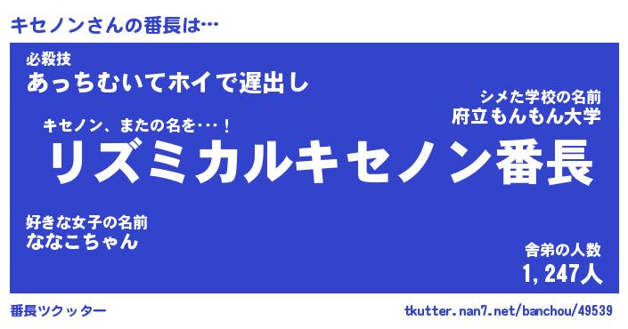 | ファンタジー風あだ名 | 『キセフェル』『エターナルキセノンー』 |