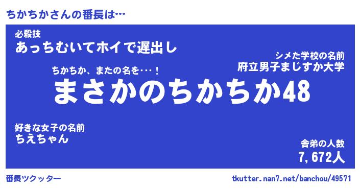 | ヘコむあだ名 | 『ちかにー』『なまこ酢』『ちかっぺ』 |