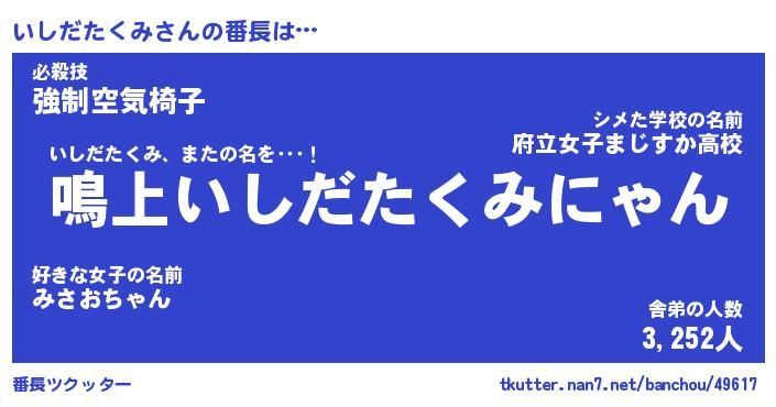 | 肩書あだ名 | 『いしだたくみ店長』 |