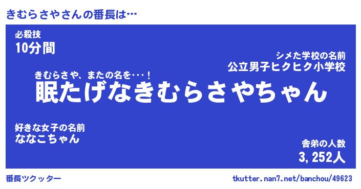 | 男性向けラノベタイトル風あだ名 | 『キムラサヤアートオンライン』 |