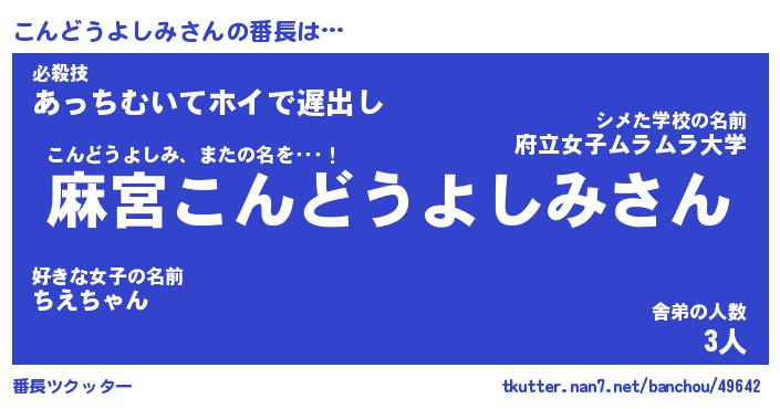 | 肩書あだ名 | 『こんどうよしみ御曹司』 |