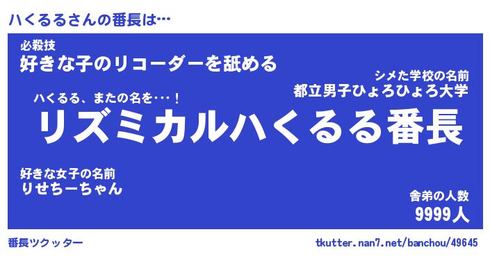| ファンタジー風あだ名 | 『ハクフェル』『エターナルハクルルー』 |