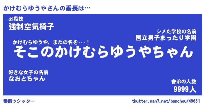 | ヒーロー風カッコイイあだ名 | 『スーパーカケムラユウヤ』 |