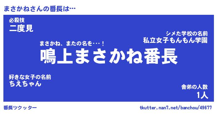 | 意味不明あだ名 | 『ペロリンまさかね』『永久保存まさかね』 |