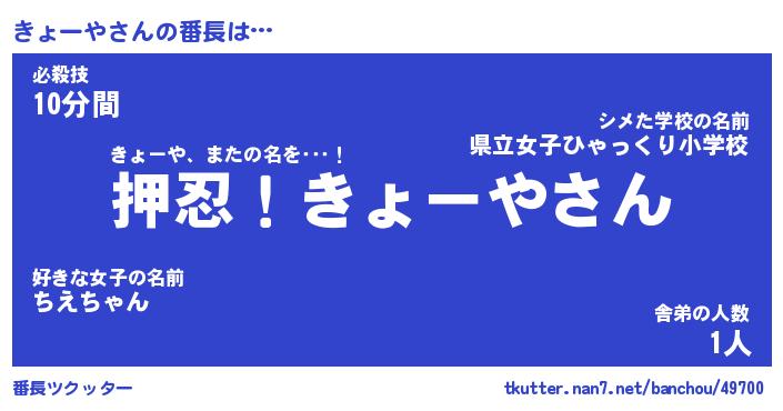 | 伝説のあだ名 | 『封印されしスナイパーきょーや』 |