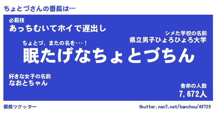 | 伝説のあだ名 | 『封印されしスナイパーちょとづ』 |