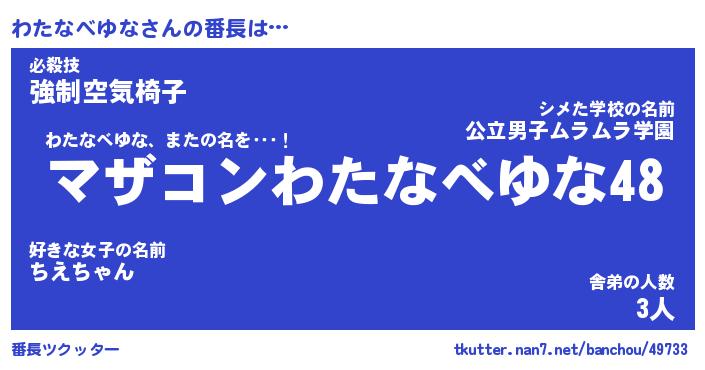 | 肩書あだ名 | 『わたなべゆな御曹司』 |