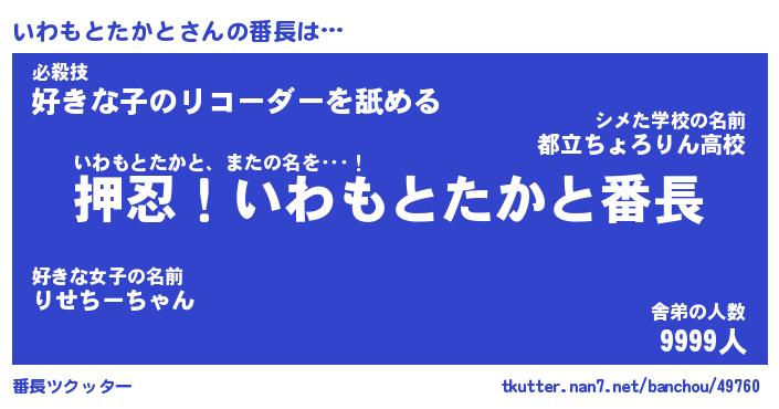 | 意味不明あだ名 | 『ペロリンいわもとたかと』 |
