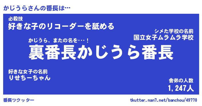 | 肩書あだ名 | 『かじうらCEO』『かじうら総理大臣』 |