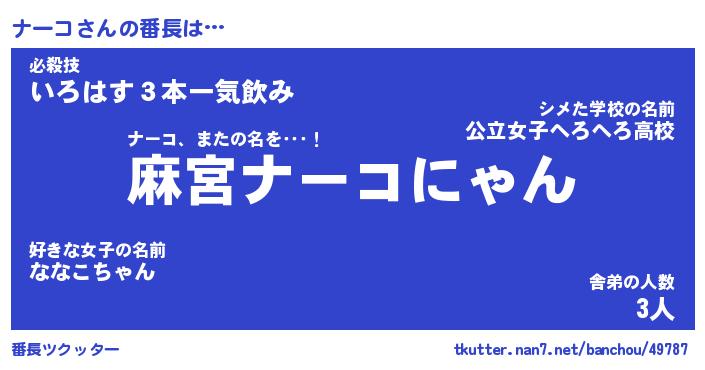 | ヒーロー風カッコイイあだ名 | 『スーパーナーコ』『ウルトラナーコマン』 |