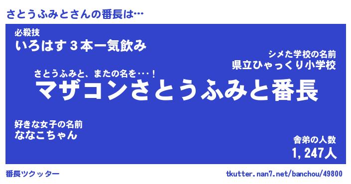 | ヒーロー風カッコイイあだ名 | 『スーパーサトウフミト』『銀牙騎士サト』 |