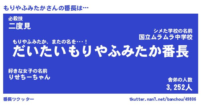 | 男性向けラノベタイトル風あだ名 | 『もりやふみたかの憂鬱』 |