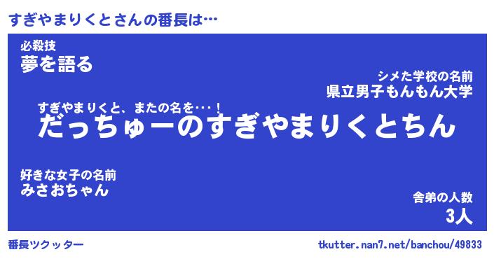 | 伝説のあだ名 | 『伝説のスナイパーすぎやまりくと』 |