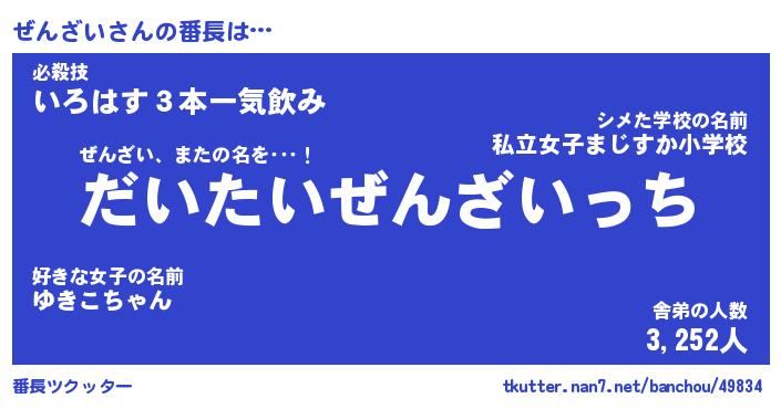 | ポケモン風あだ名 | 『ゼンチュウ』『ゼンザダネ』 |