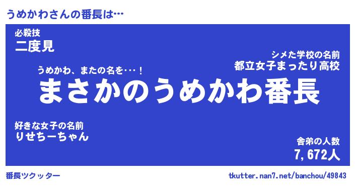 | 意味不明あだ名 | 『ペロリンうめかわ』『永久保存うめかわ』 |