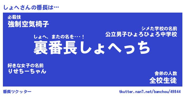 | ヒーロー風カッコイイあだ名 | 『スーパーショヘ』『ウルトラしょへマン』 |
